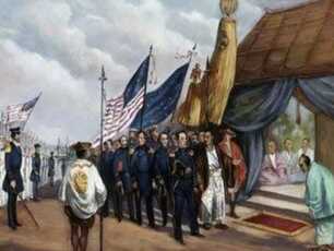Pada tahun 1853, Matthew C. Perry datang membawa surat resmi dari presiden Amerika Serikat yang menyatakan hubungan dengan Jepang, namum Jeoang mengajukan 1 tahun untuk pertimbangan. 1854 Matthew kembali ke Jepang namun kali ini sedikit ada paksaan dengan ancaman militer dan meriam, sehingga akhirnya Jepang menyerah dan Shogun memberikan kekuasaannya kembali pada Kaisar.