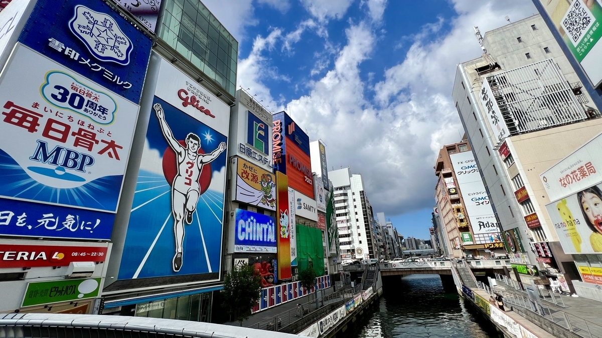 Osaka, JepangDotonbori adalah kawasan hiburan, kuliner, dan perbelanjaan ikonik di sepanjang Kanal Dotonbori. terkenal dengan tanda neon Glico Man yang ikonik, kuliner kaki lima, dan restoran kepiting Kani Doraku